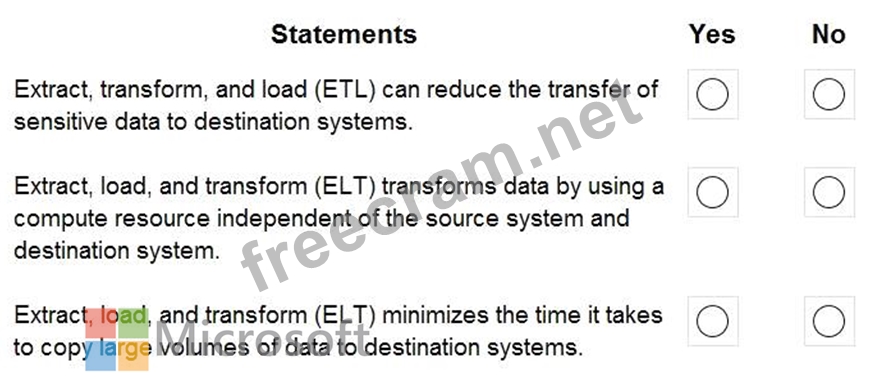 For each of the following statements, select Yes if the statement is true. Otherwise, select No.