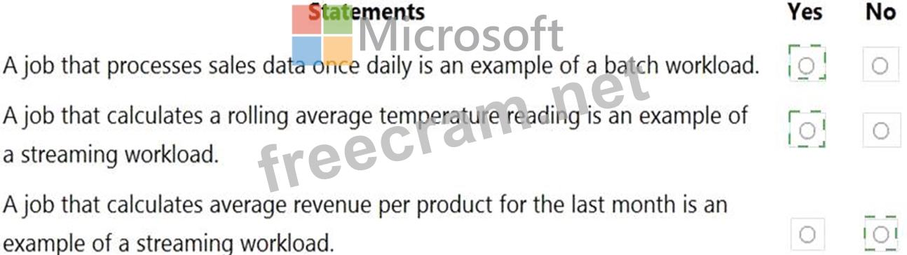 For each of the following statements, select Yes if the statement is true. Otherwise, select No.