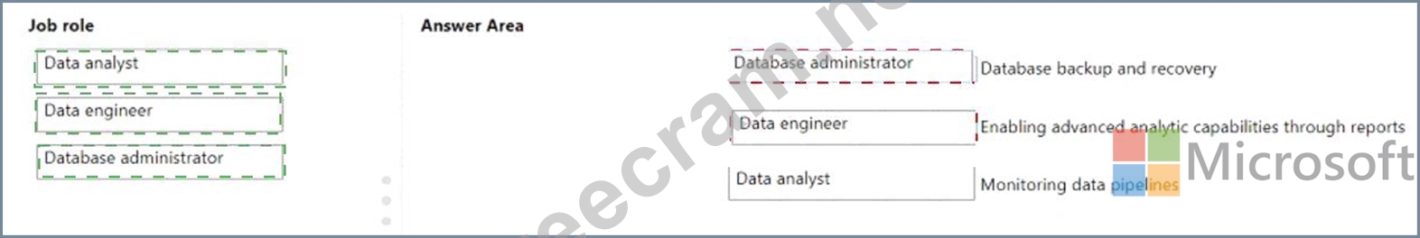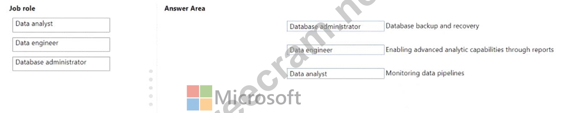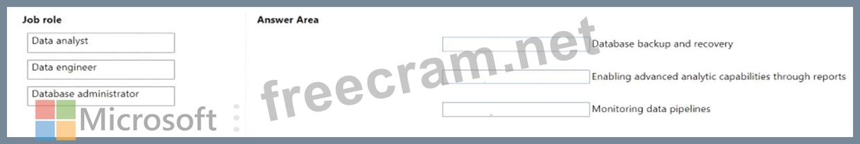 To answer, drag the appropriate role from the column on the left to its task on the right. Each role may be used once, more than once, or not at all.