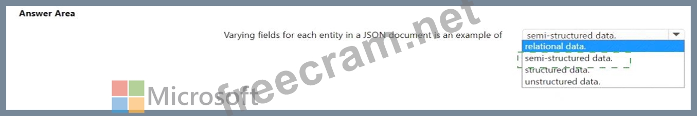 Question 123: You have the following JSON document. (Exhibit) Use the drop...