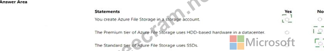 For each of the following statements, select Yes if the statement is true. Otherwise, select No. NOTE: Each correct selection is worth one point.