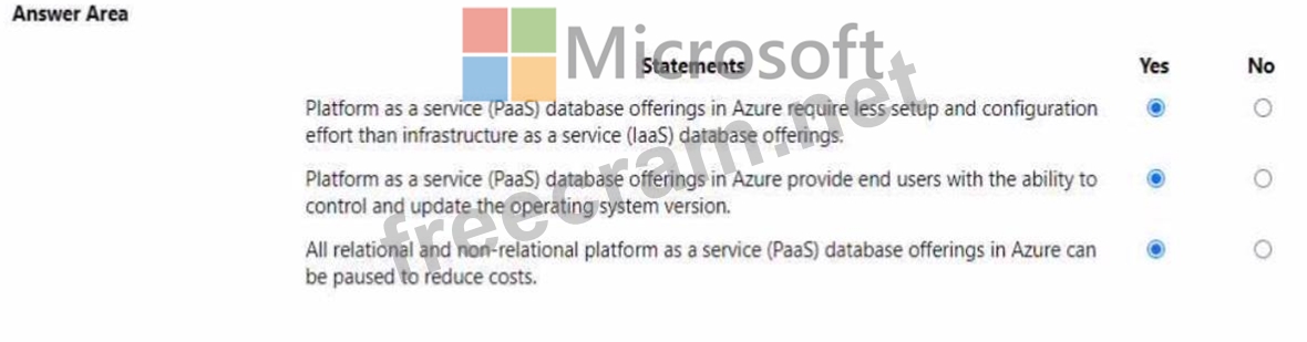 For each of the following statements. select Yes if the statement is true. Otherwise, select No.