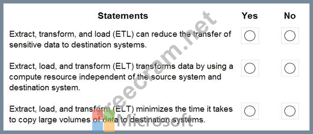 For each of the following statements, select Yes if the statement is true. Otherwise, select No.