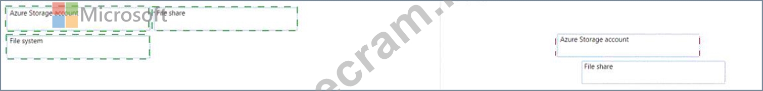 Match the Azure Data Lake Storage terms to the appropriate levels in the hierarchy.