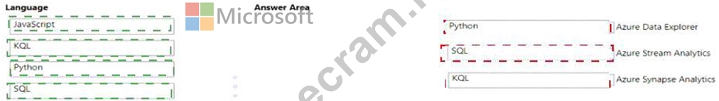 To answer, drag the appropriate language from the column on the left to its service on the right. Each language may be used once, more than once, or not at all.