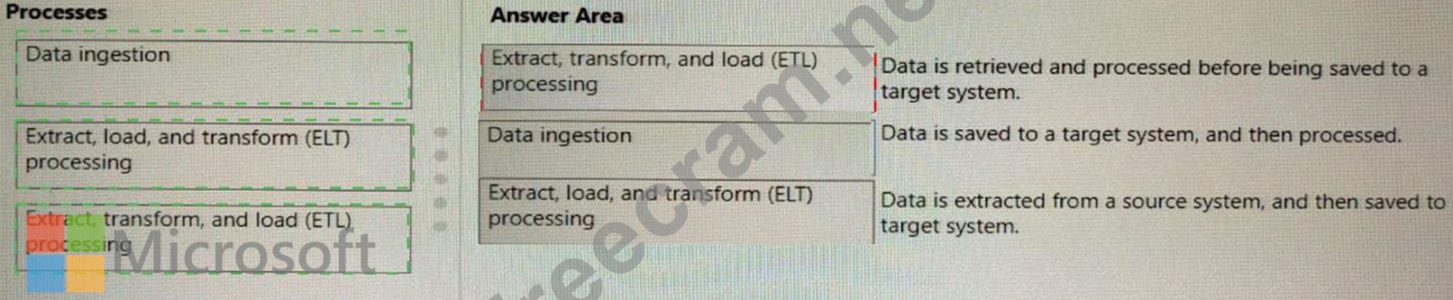 To answer, drag the appropriate process from the column on the left to its scenario on the right. Each process may be used once, more than once, or not at all.