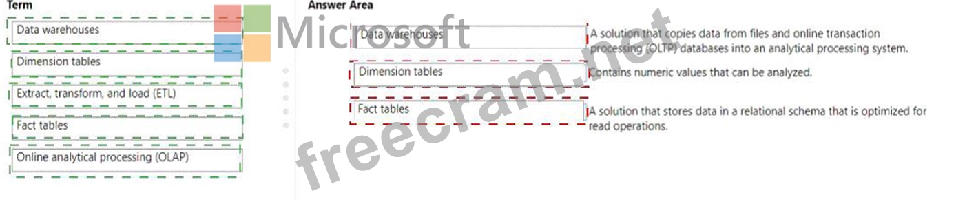 Question 146: Match the types of activities to the appropriate Azure Data ...