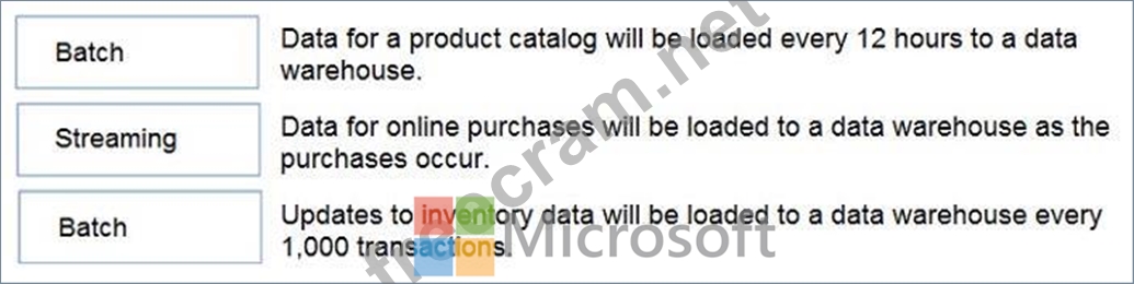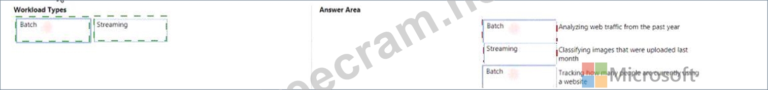 To answer, drag the appropriate workload type from the column on the left to its scenario on the right. Each workload type may be used once, more than once, or not at all.