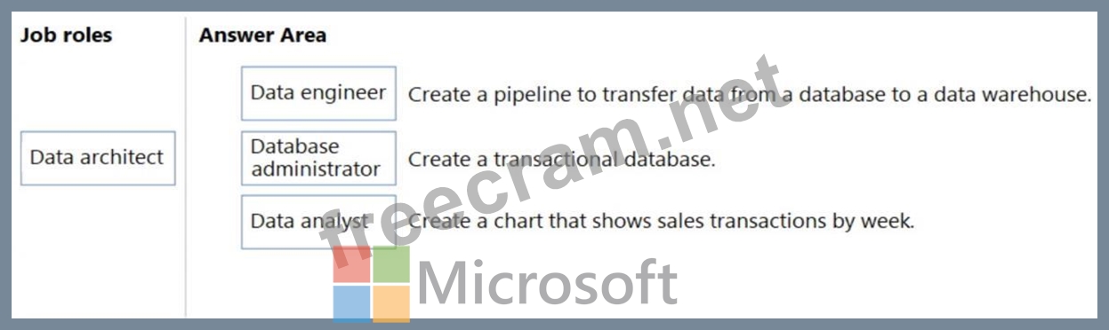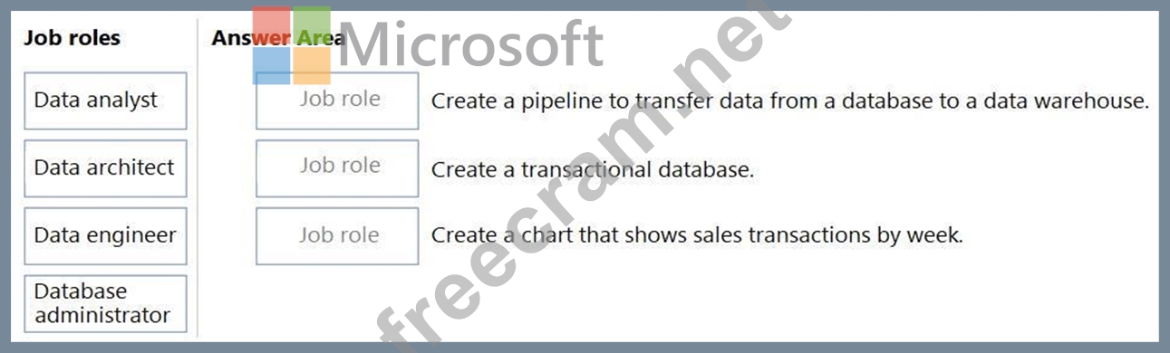 To answer, drag the appropriate job role from the column on the left to its task on the right. Each role may be used once, more than once, or not at all.