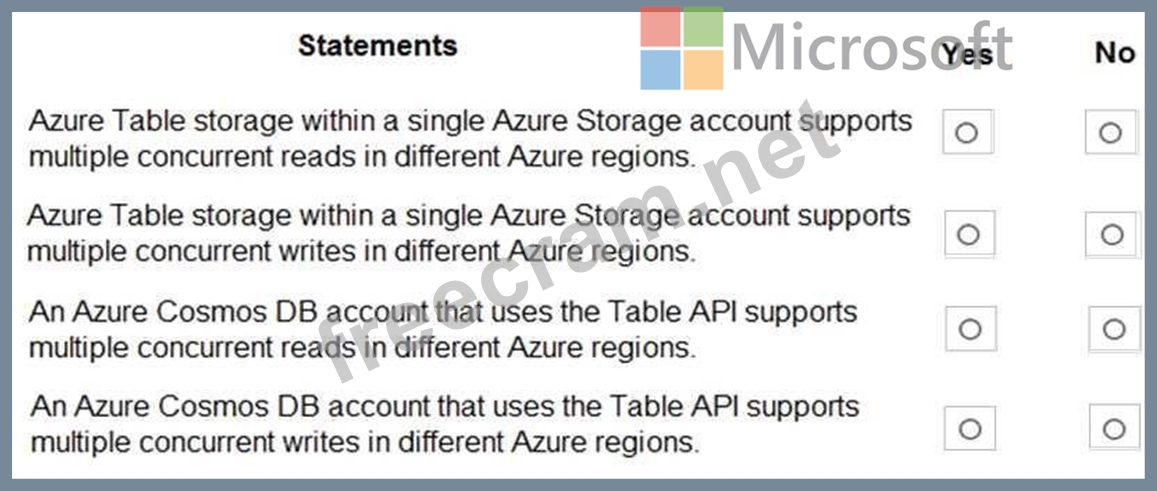 Question 1: You need to store data by using Azure Table storage. What sh...