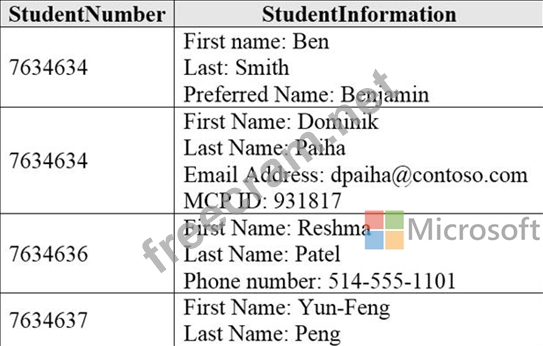 Question 1: You need to store data by using Azure Table storage. What sh...