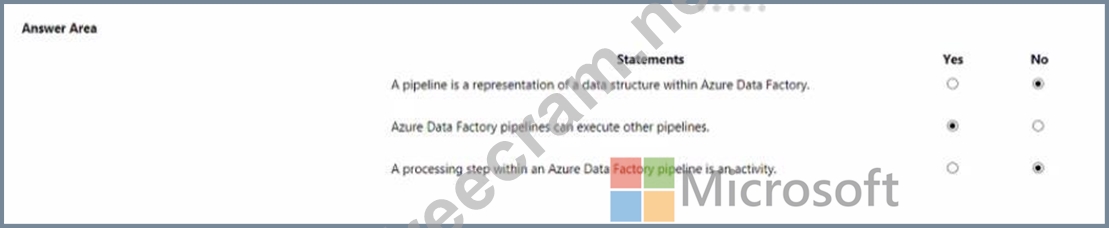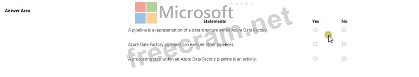Question 72: match the Azure data factory components to the appropriate d...