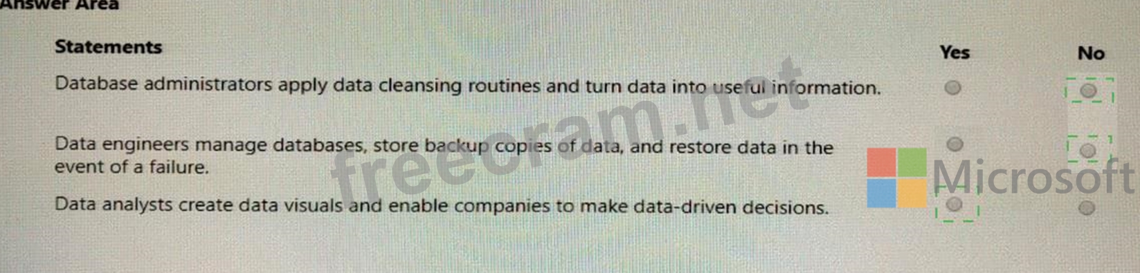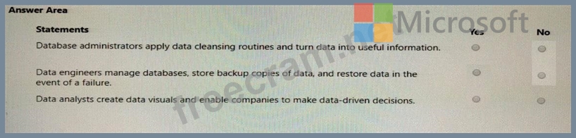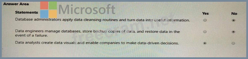 For each of the following statements, select Yes if the statement is true. Otherwise, select No. NOTE: Each correct selection is worth one point.