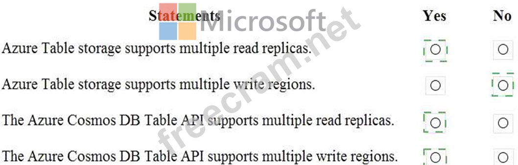 For each of the following statements, select Yes if the statement is true. Otherwise, select No.