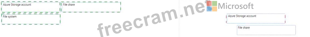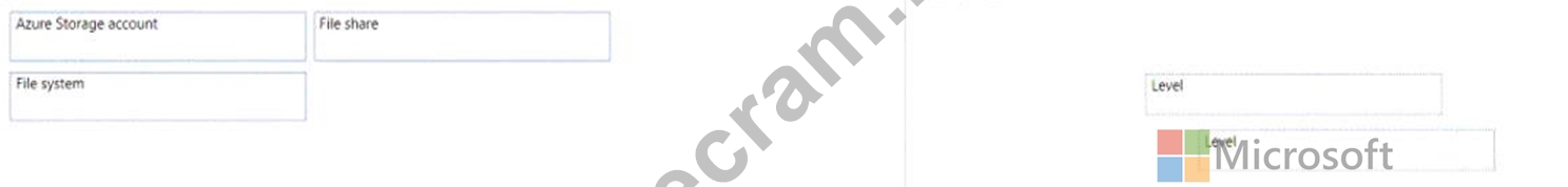 Match the Azure Data Lake Storage terms to the appropriate levels in the hierarchy.
