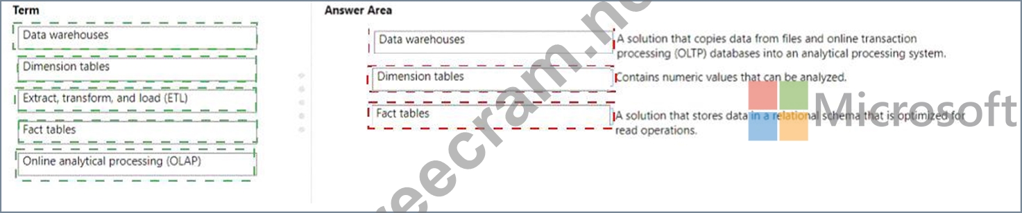 To answer, drag the appropriate term from the column on the left to its description on the right. Each term may be used once, more than once, or not at all.