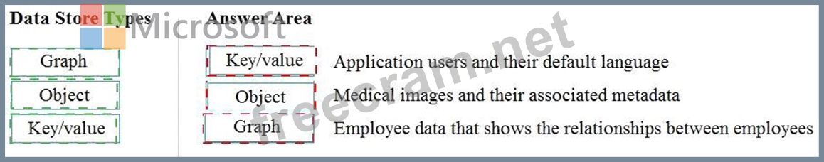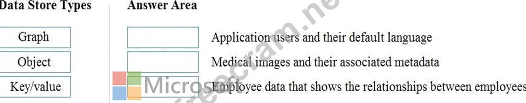To answer, drag the appropriate data store type from the column on the left to its scenario on the right. Each data store type may be used once, more than once, or not at all.