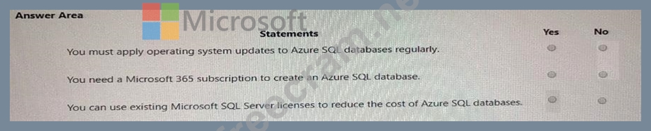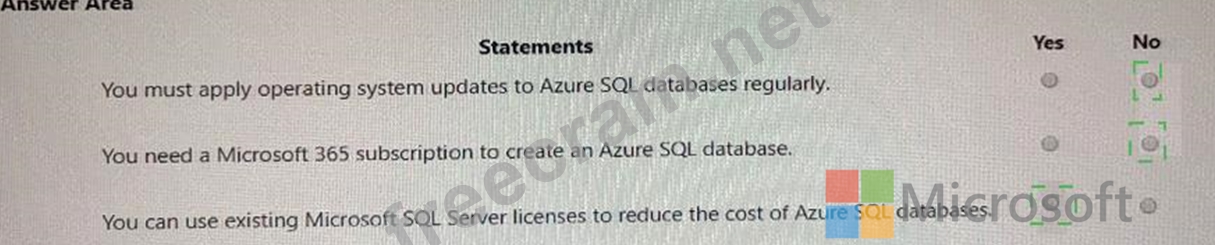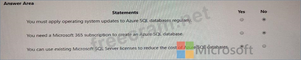 Select the answer that correctly completes the sentence.For each of the following statements, select Yes if the statement is true. Otherwise, select No. NOTE: Each correct selection is worth one point.