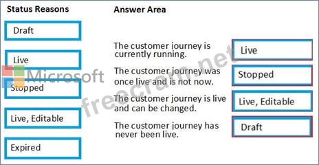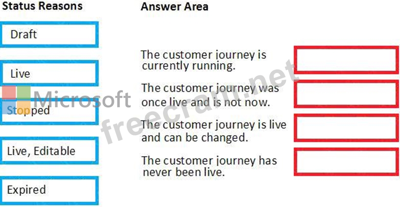 Which Status Reasons correspond to the descriptions? To answer, drag the appropriate Status Reason to the correct description. Each Status Reason may be used once, more than once or not at all. You may need to drag the split bar between panes or scroll to view the content.