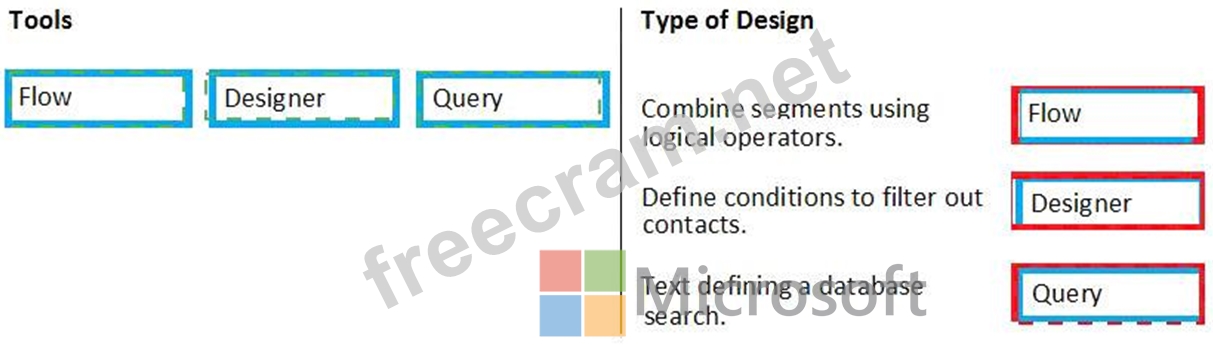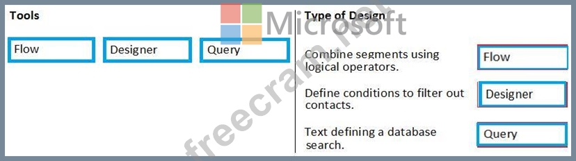 Which tool should you use for each type of design? To answer, drag the appropriate tool to the correct type of design. Each tool may be used once, more than once or not at all. You may need to drag the split bar between panes or scroll to view the content.