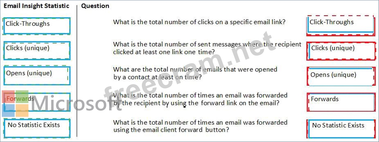 Which question is answered by the email insight statistic listed? To answer, drag the email statistic to the question answered by that statistic. Each statistic may be used one, more than once or not at all. You may need to drag the split bar between panes or scroll to view the content.