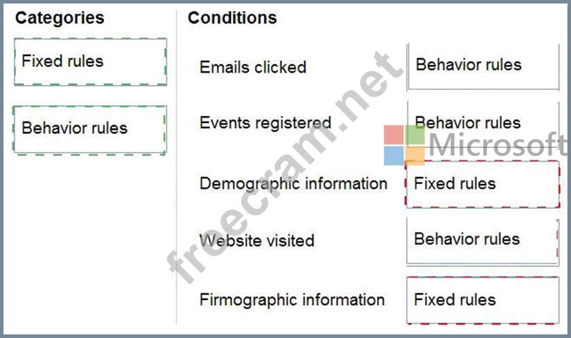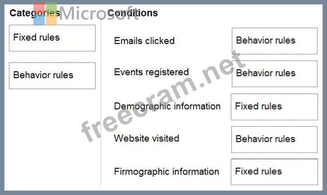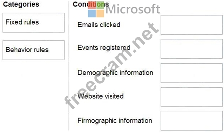 Which categories should you use during the configuration? To answer, drag the appropriate category to the correct condition. Each category may be used once, more than once, or not at all. You may need to drag the split bar between panes or scroll to view content.