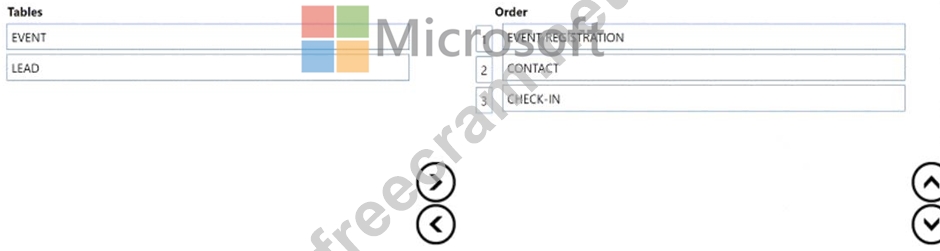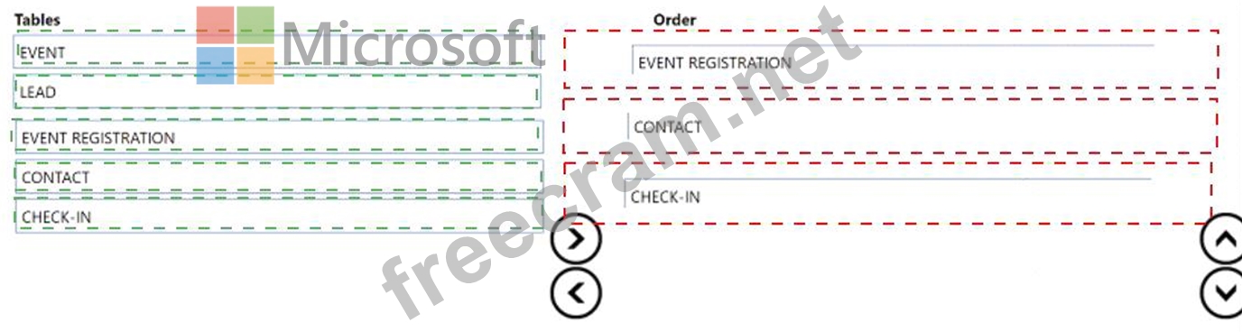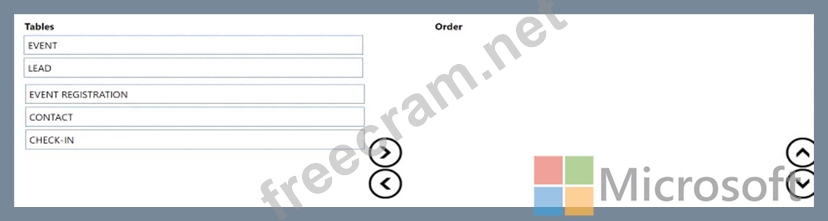Which three tables should you select in sequence? To answer, move the appropriate tables from the list of tables to the answer area and arrange them in the correct order.
