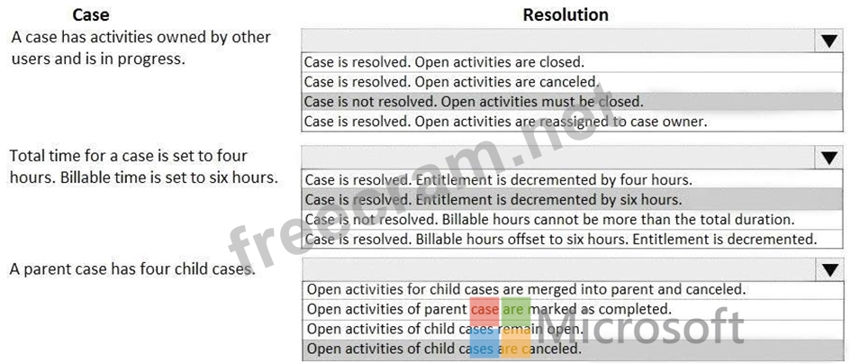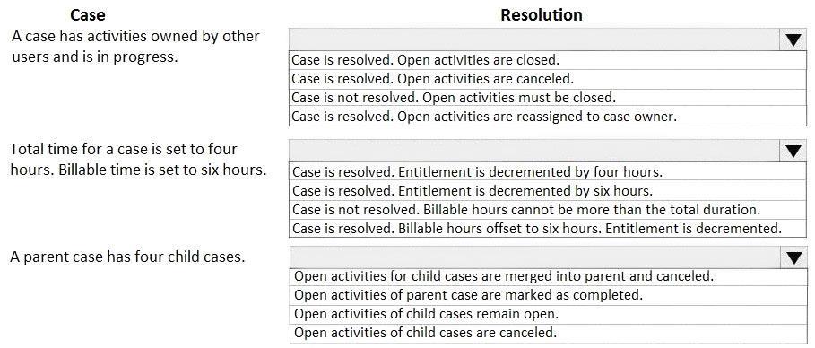 How are each of the casesresolved? To answer, select the appropriate options in the answer area.