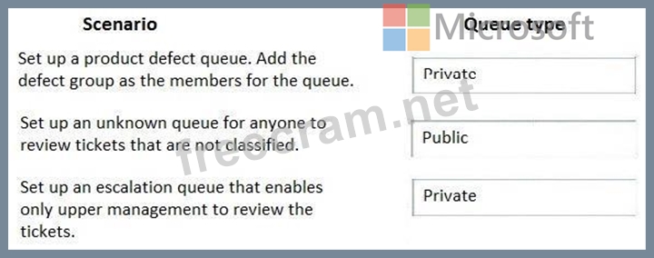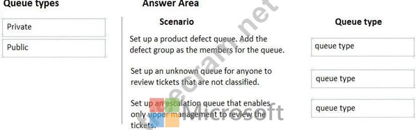 Which queue types should you use? To answer, drag the appropriate queue types to the correct scenarios. Each queue type may be used once, more than once, or not at all. You may need to drag the split bar between panes or scroll to view content.