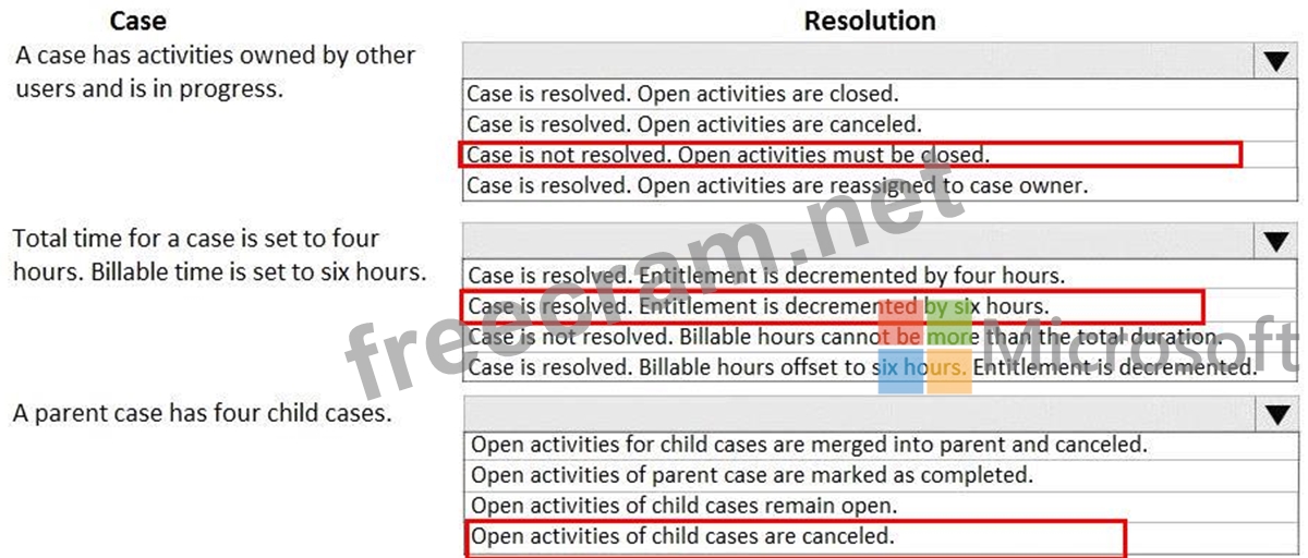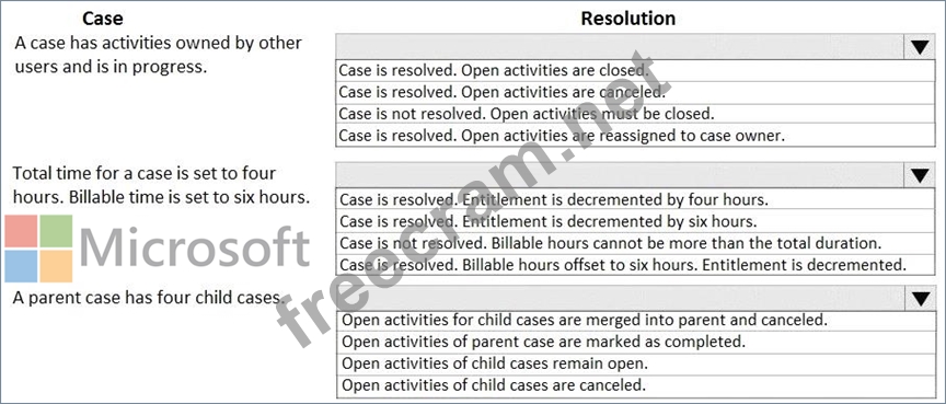 How are each of the cases resolved? To answer, select the appropriate options in the answer area.