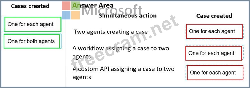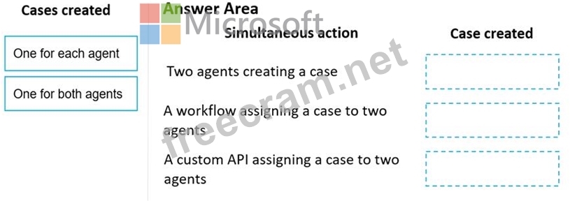 How many cases are created? To answer, drag the appropriate cases created options to the correct simultaneous actions. Each cases created option may be used once, more than once, or not at all. You may need to drag the split bar between panes or scroll to view content.