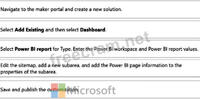 Step 4: Edit the sitemap, add a new subarea, and add the Power BI page information to the properties of the subarea Edit the default site map Your environment comes with a default site map. This site map is supported for both custom business apps and Dynamics 365 for Outlook.