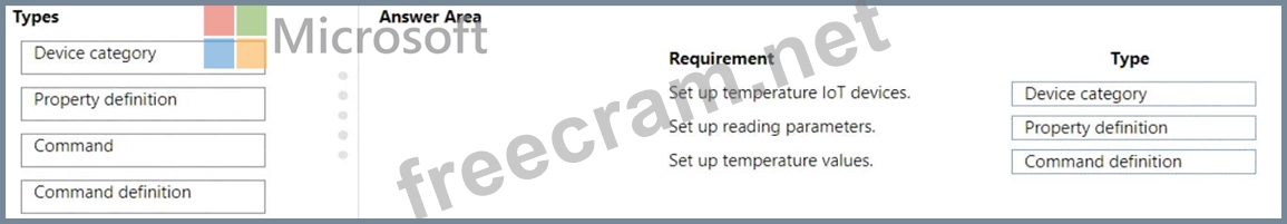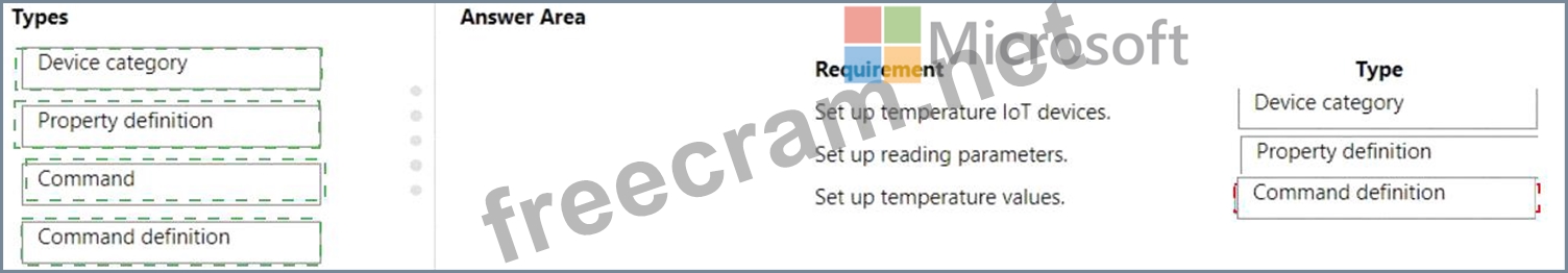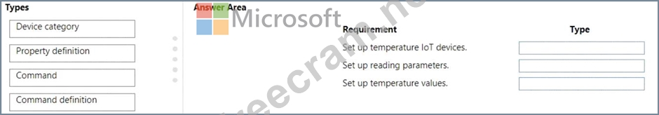 A user is configuring loT devices to record specific types of information, such as temperature, humidity, and air flow. Several types of devices require configuration for pre-set commands and ease of administration.