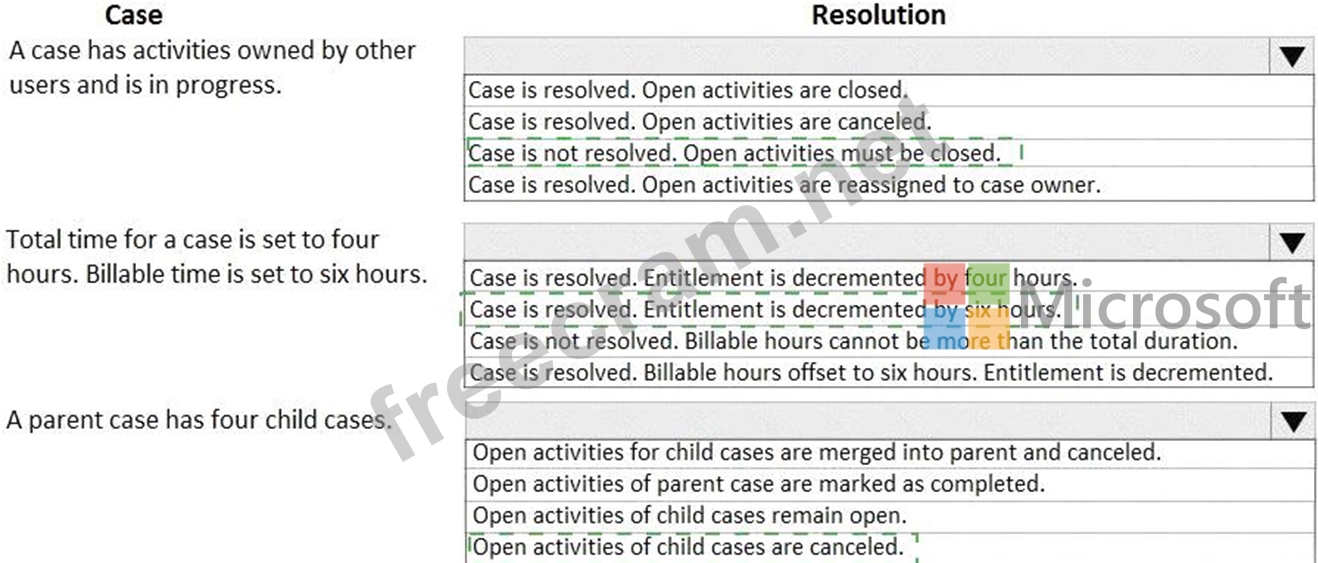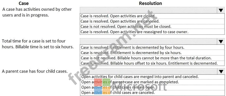 How are each of the cases resolved? To answer, select the appropriate options in the answer area.