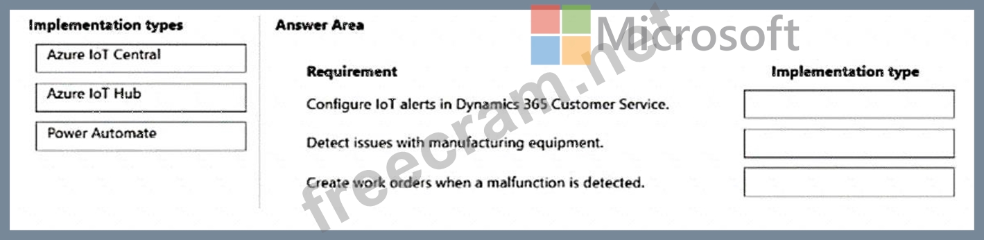A company deploys Dynamics 365 Customer Service. The company plans to use IoT to collect information about manufacturing equipment.