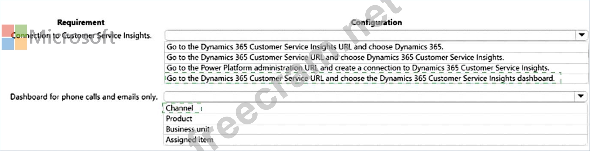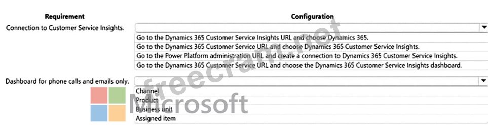 Box 1: Go to the Dynamics 365 Customer Service URL and choose the Dynamics 365 Customer Service Insights dashboard.