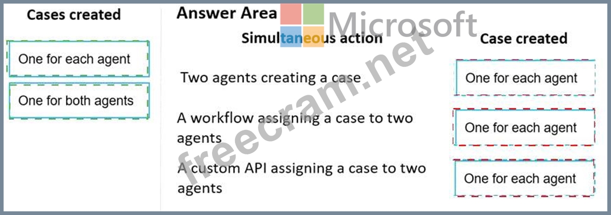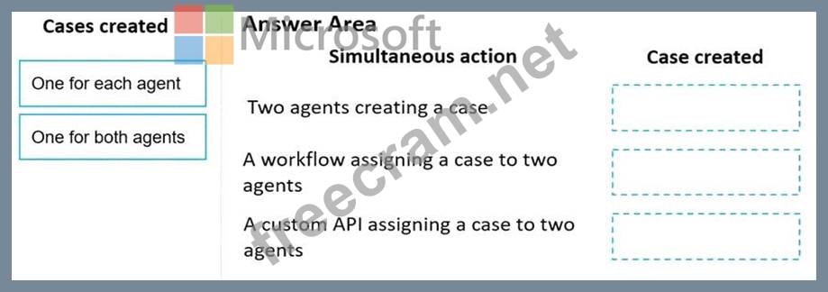 How many cases are created? To answer, drag the appropriate cases created options to the correct simultaneous actions. Each cases created option may be used once, more than once, or not at all. You may need to drag the split bar between panes or scroll to view content.