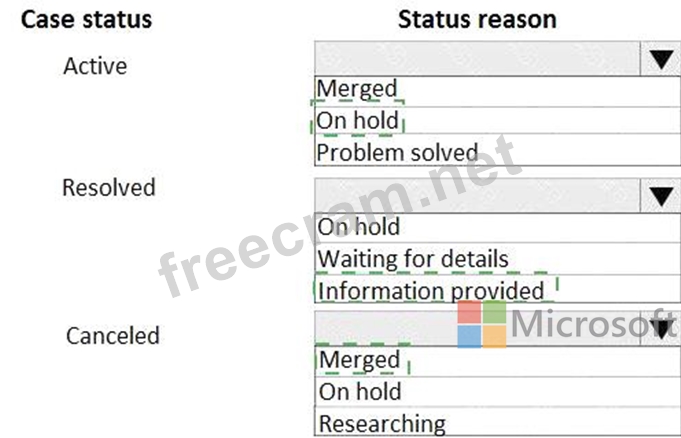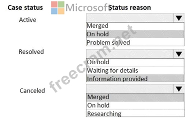 Which status reason is used for each case status? To answer, select the appropriate option in the answer area.