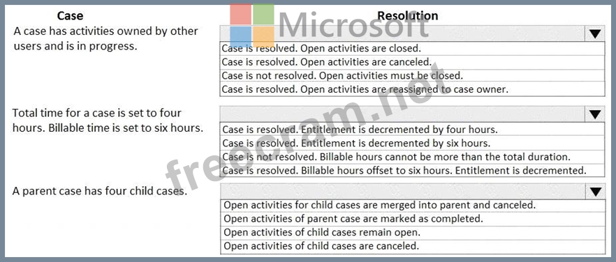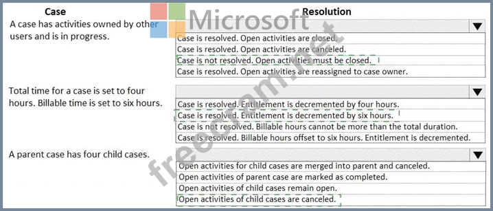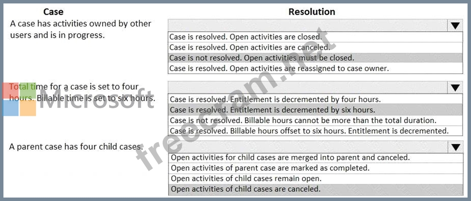 How are each of the cases resolved? To answer, select the appropriate options in the answer area.