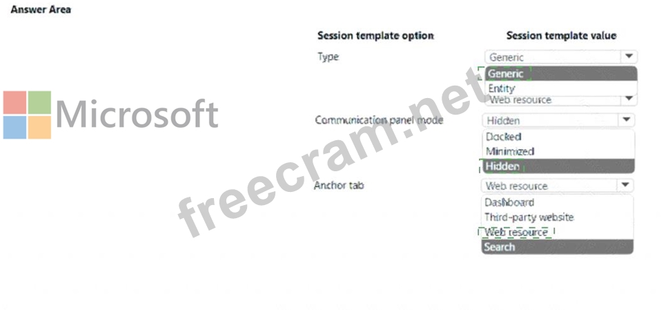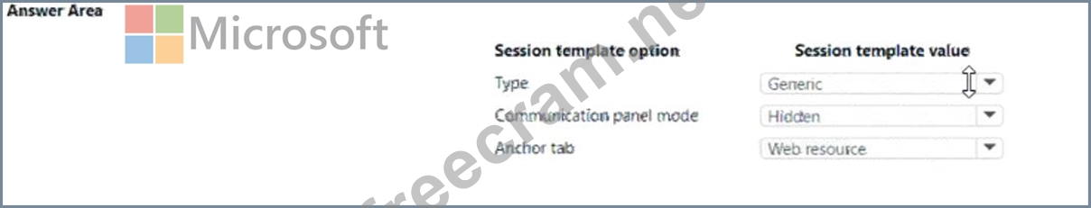 How should you configure each area at the template? To answer., select the appropriate options in the answer area. NOTE: Each correct selection is worth one point.