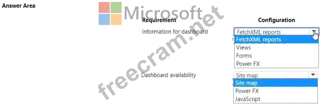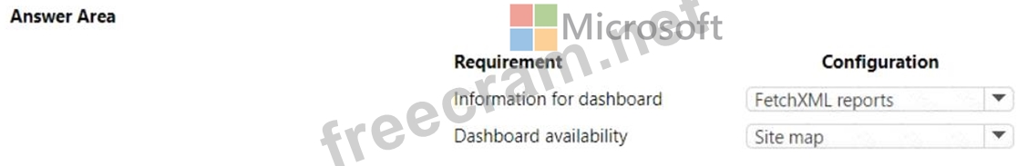 You configure Dynamics 365 Customer Service. Managers require a custom dashboard with the following: