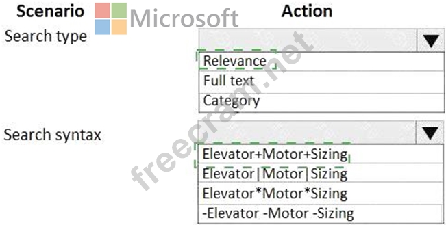 How should you configure the search? To answer, select the appropriate options in the answer area.