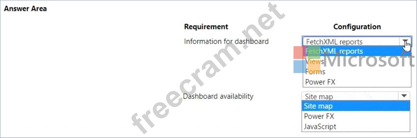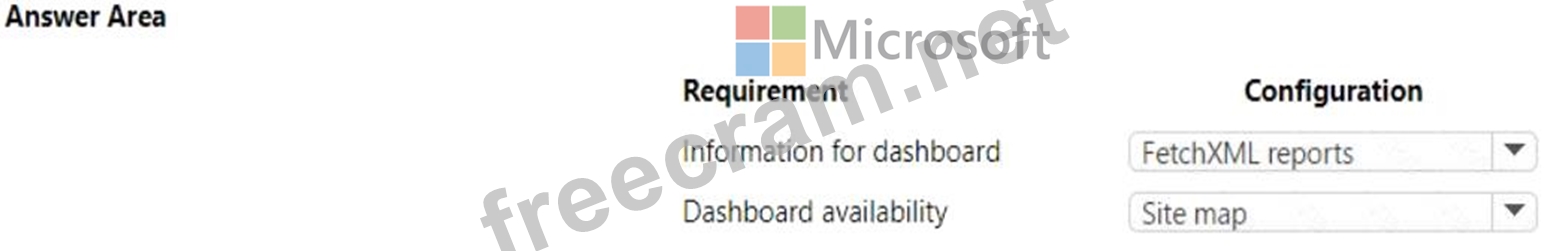 You configure Dynamics 365 Customer Service. Managers require a custom dashboard with the following: