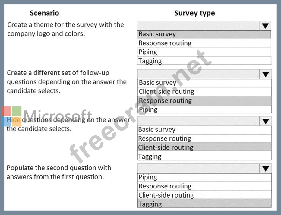 Question 74: A company implements Dynamics 365 Customer Voice. The compan...