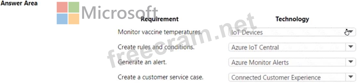 Vaccines must be kept below negative 60 degrees Celsius or they cannot be used. The company requires a solution that meets the following requirements: