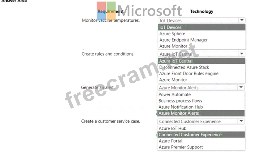 Which technologies should you use? To answer, select the appropriate options in the answer area.