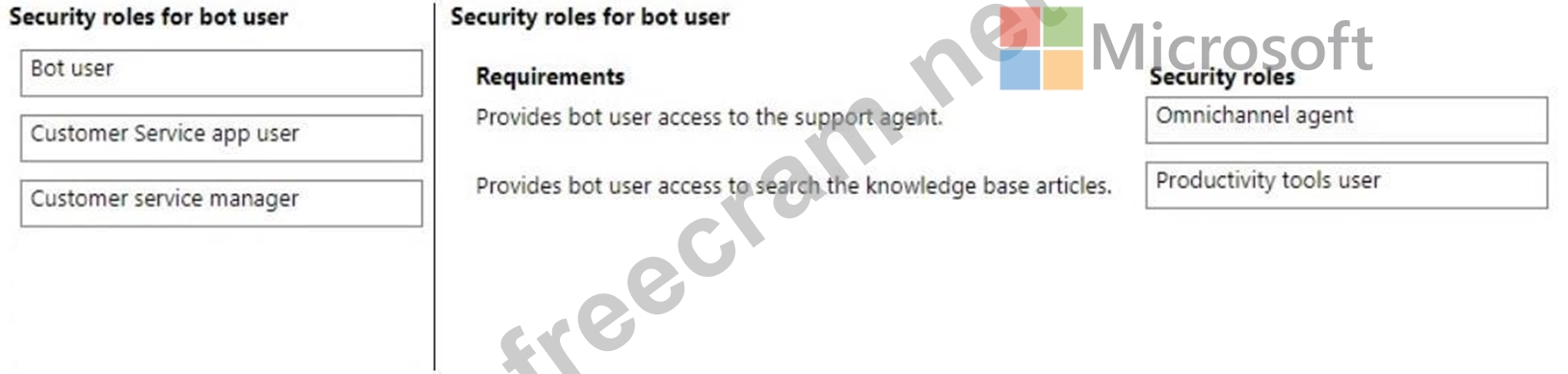 You need to identify the security roles that are required for the bot user.