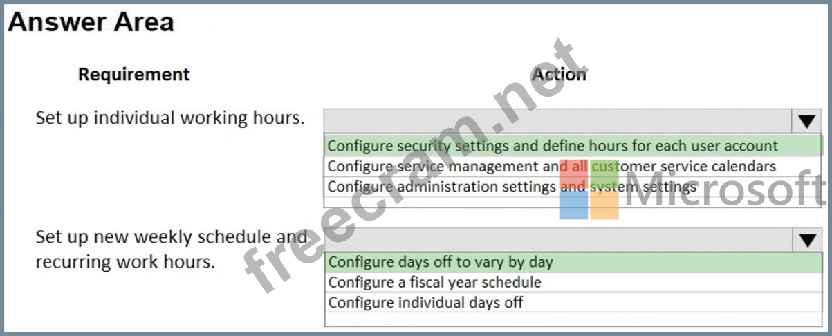 Question 62: A company uses Dynamics 365 Customer Service. The schedule s...