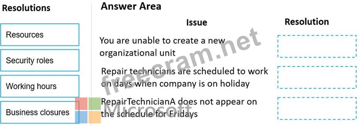 You are setting up scheduling to dispatch repair technicians. You encounter the following issues: