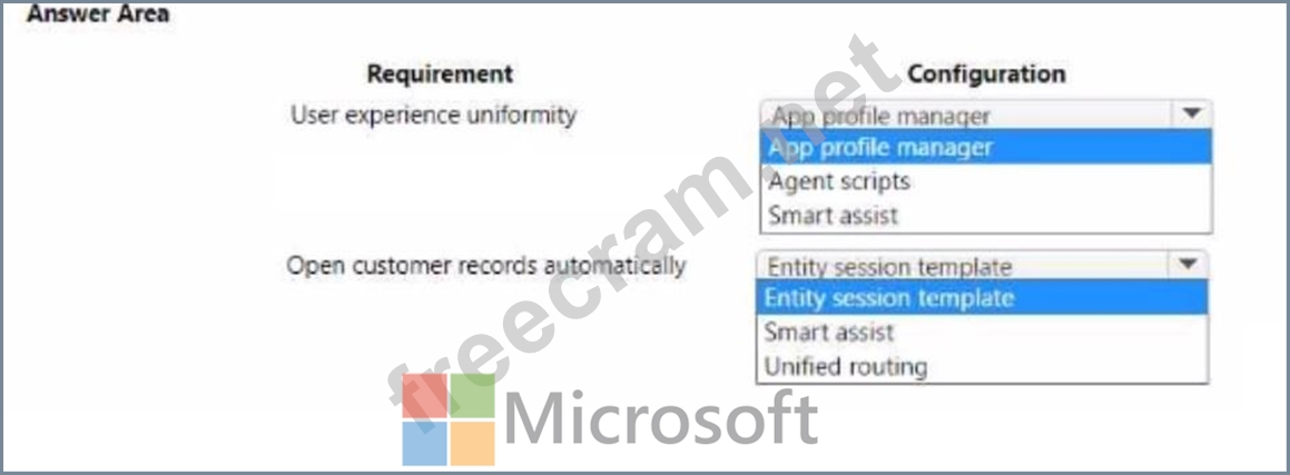 Question 44: You are implementing Dynamics 365 Customer Service Workspace...